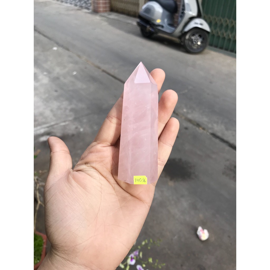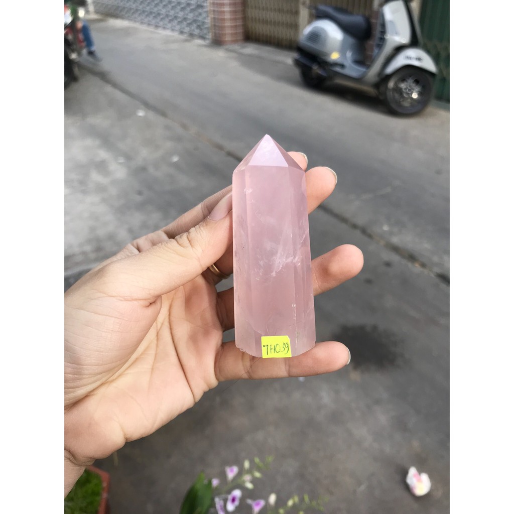 Trụ tinh thể đá thach anh hồng tư nhiên, thanh tẩy, trang trí, nâng cao năng lượng, size trung bình 8-10 cm