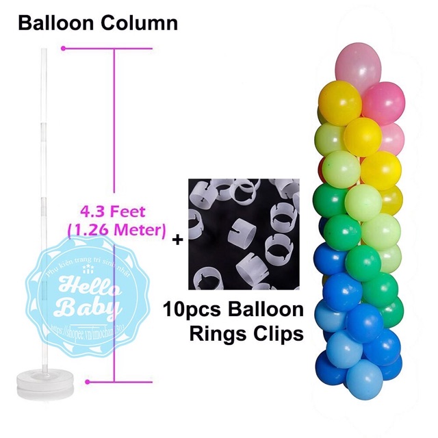 Giới thiệu Trụ trang trí bóng 1m20 + 7 vòng cài bóng thành trụ