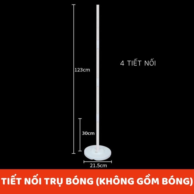 Trụ gồm 3 thanh ghép lại, có đế để đổ nước hoặc cát vào cho nặng. Trụ gồm 3 thanh ghép lại khoảng 1.2m, trụ bằng nhựa rất bền, sử dụng được nhiều lần.Sản phẩm chỉ gồm trụ, không gồm các bóng trang trí, màu sắc của đế về tuỳ đợt hàng nên giao ngẫu nhiên nha khách.