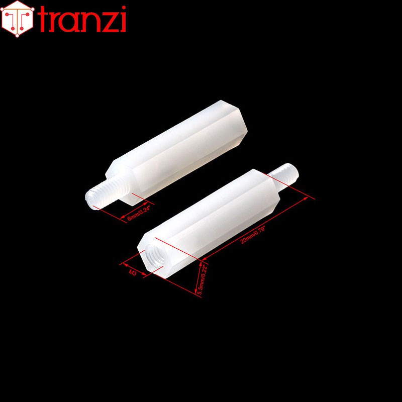 Giới thiệu Trụ vít lục giác đực cái nhựa trắng M3x20+6 - túi 10 cái