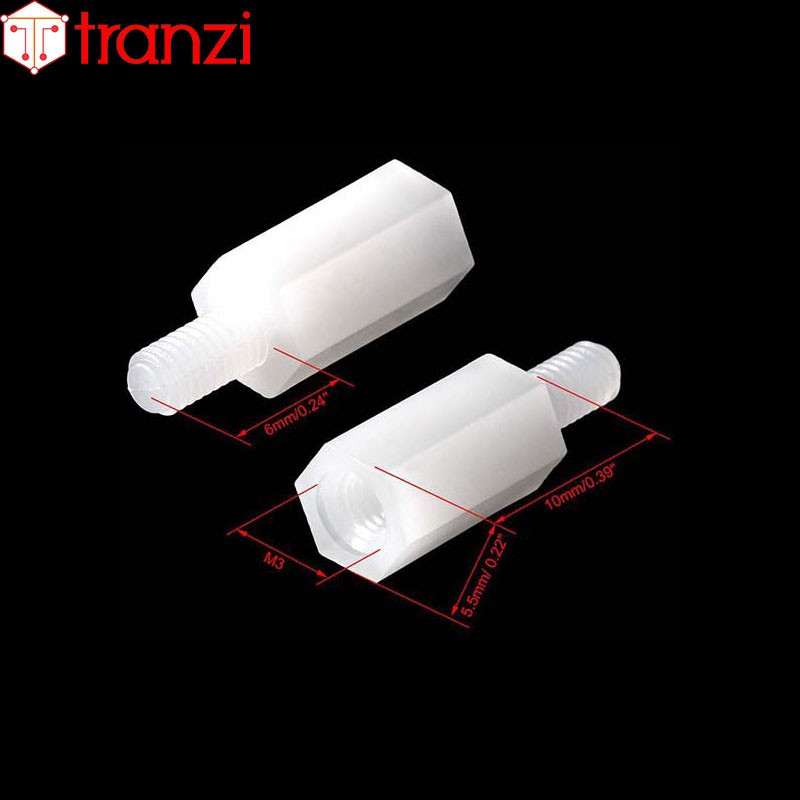Giới thiệu Trụ vít lục giác đực cái nhựa trắng M3x10+6 - túi 50 cái