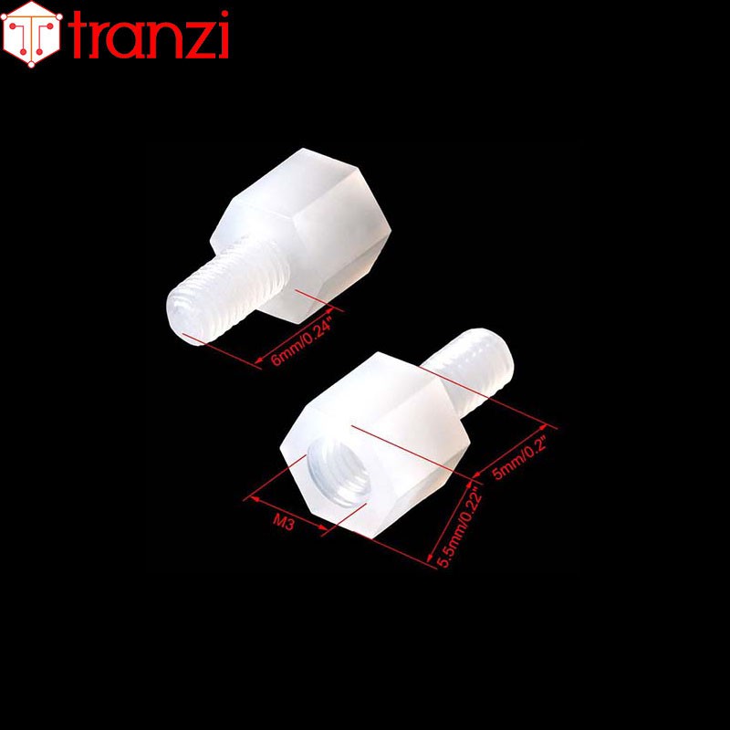 Giới thiệu Trụ vít lục giác đực cái nhựa trắng M3x5+6 - túi 50 cái