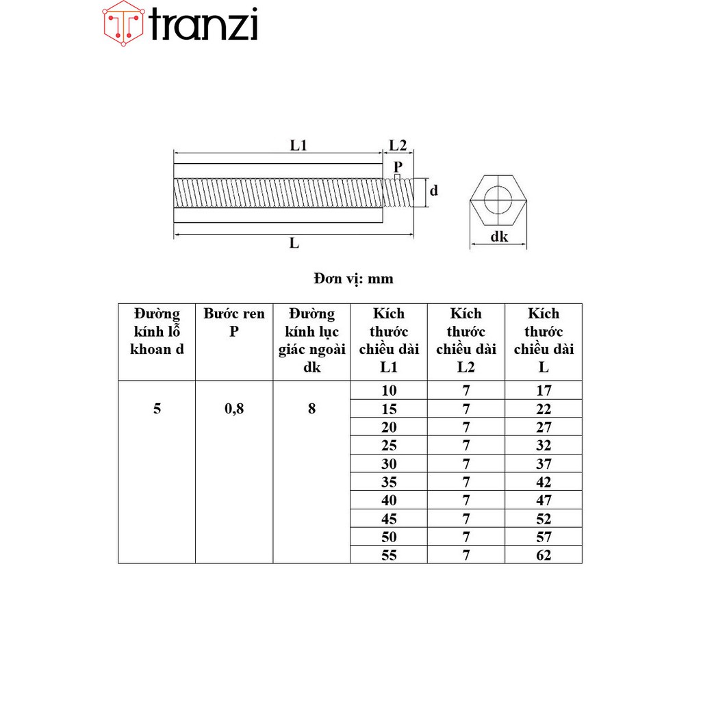 - Kích thước chiều dài L1 (mm): 5
