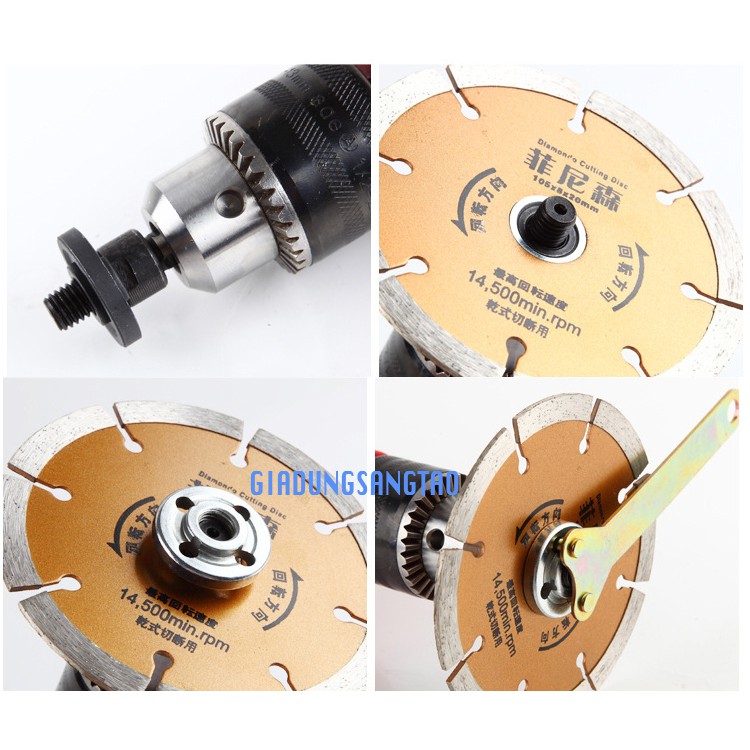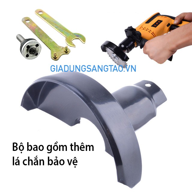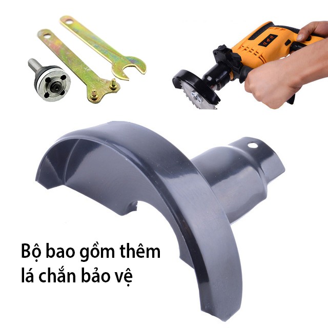 Bộ phụ kiện dùng để lắp vào máy khoan tay, chuyển đổi máy khoan thành máy cắt, máy cưa:Dùng chuyển đổi cho máy khoan để lắp đĩa cắt phi 100-110mm