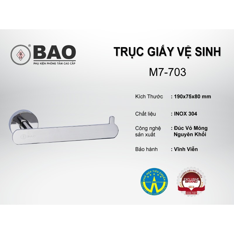 Trục giấy vệ sinh BAO M7-703 đúc vỏ mỏng nguyên khối, bảo hành vĩnh viễn