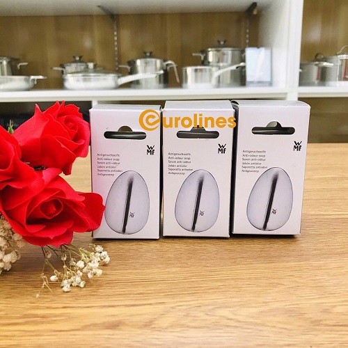 + Xà phòng kim loại dạng hình trứng giúp luôn đứng vững và tiện dụng khi để cạnh bồn rửa tay, vừa là vật trang trí đẹp mắt. Viên rửa tay khử mùi WMF Anti-Geruchseife Gourmet Made in Germany nhanh chóng làm sạch mùi trên tay sau khi chế biến cá, thịt, tỏi, hành…, khử sạch thực phẩm và mùi gia vị trên tay một cách nhanh chóng và lành tính.