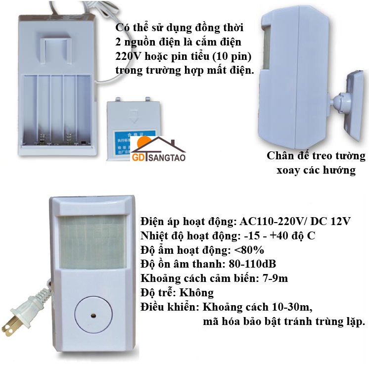 Với thiết bị báo động cảm biến cơ thể có remote RF BS-2182SB, bạn sẽ có một giải pháp an toàn để tự bảo vệ cho tài sản của mình, gia đình vầ cơ quan. Khi có người đi vào vùng quét của thiết bị thì BS-2182SB sẽ vào trạng thái báo động và phát ra một âm thanh có tần số 120 db rất to sẽ giúp gia chủ phát hiện ra có trộm hoặc nếu như không ai ở nhà thì sẽ khiển kẻ trộm hoảng sợ và hàng xóm xung quanh sẽ biết để sang bắt trộm.