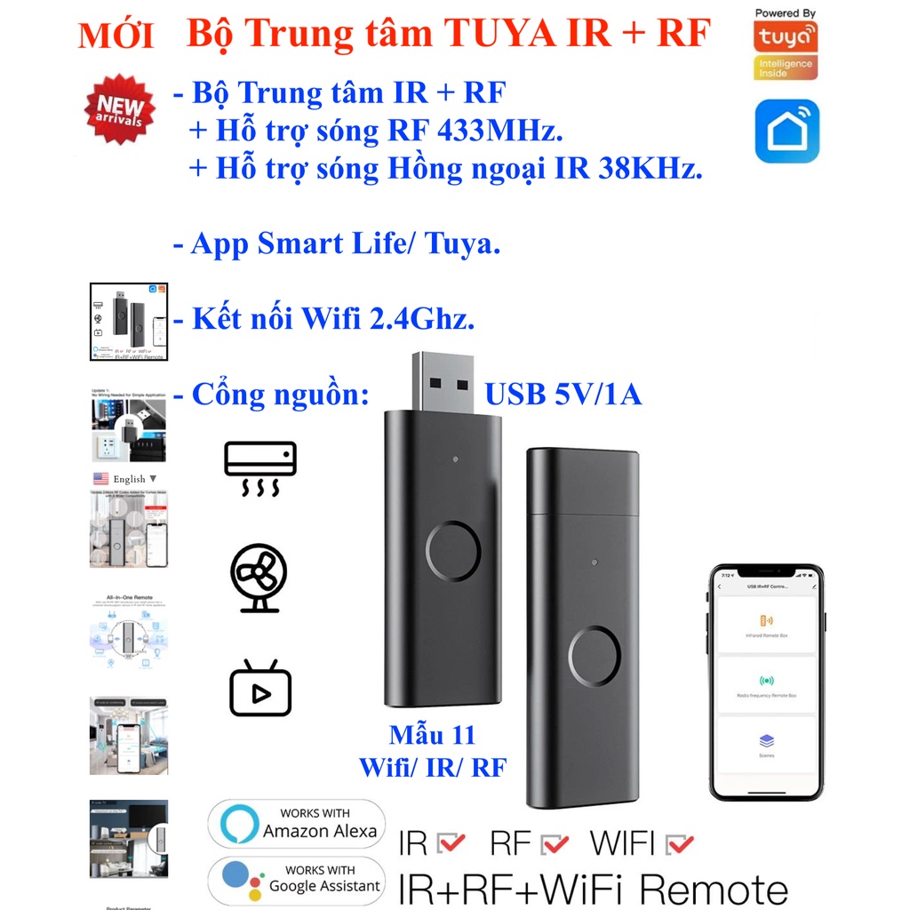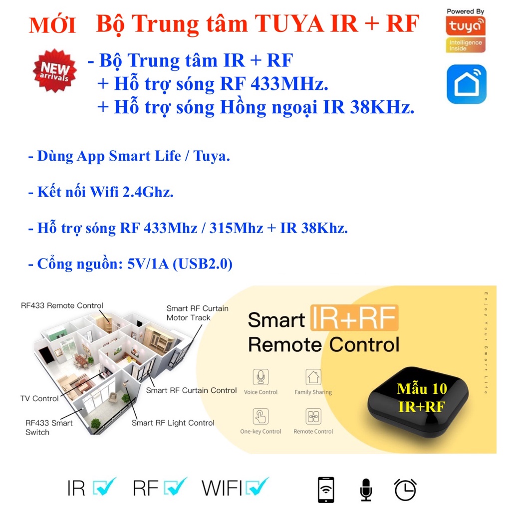 - Bộ trung tậm IR + RF thuộc Hệ sinh thái Tuya.