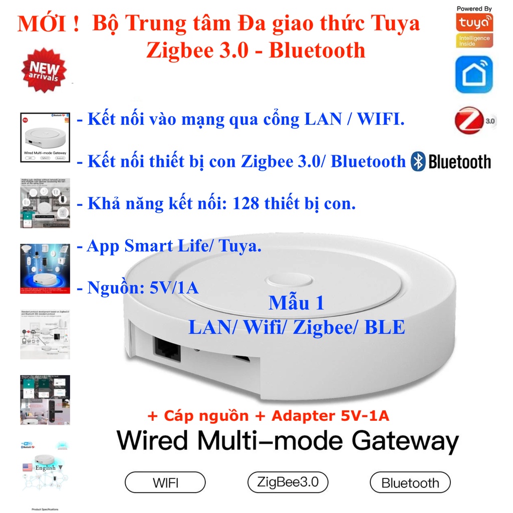 - Bộ trung tậm kết nối sóng Zigbee và sóng Bluetooth thuộc Hệ sinh thái Tuya.