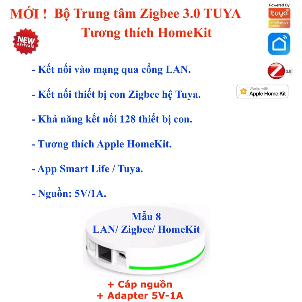 - Bộ trung tậm kết nối sóng Zigbee thuộc Hệ sinh thái Tuya.