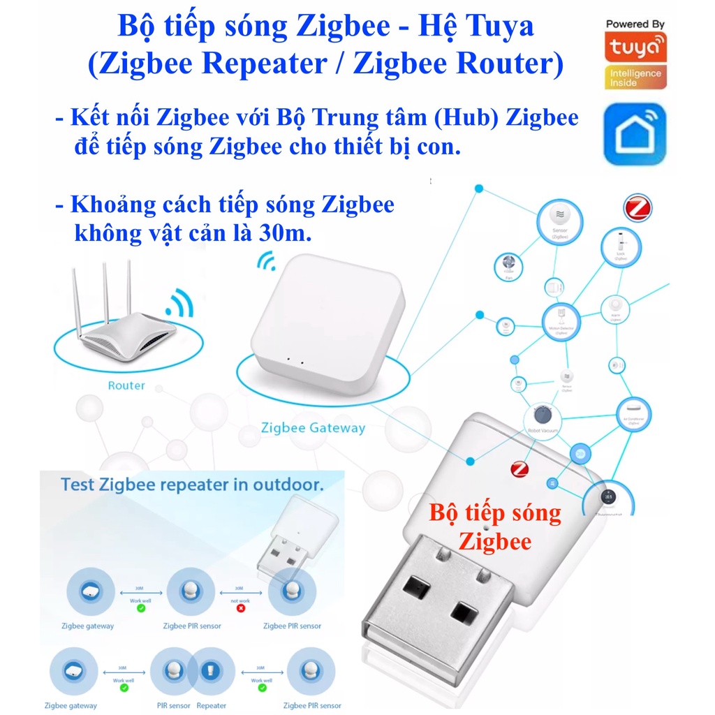 - Dùng để tiếp sóng Zigbee cho Bộ Trung tâm Zigbee.