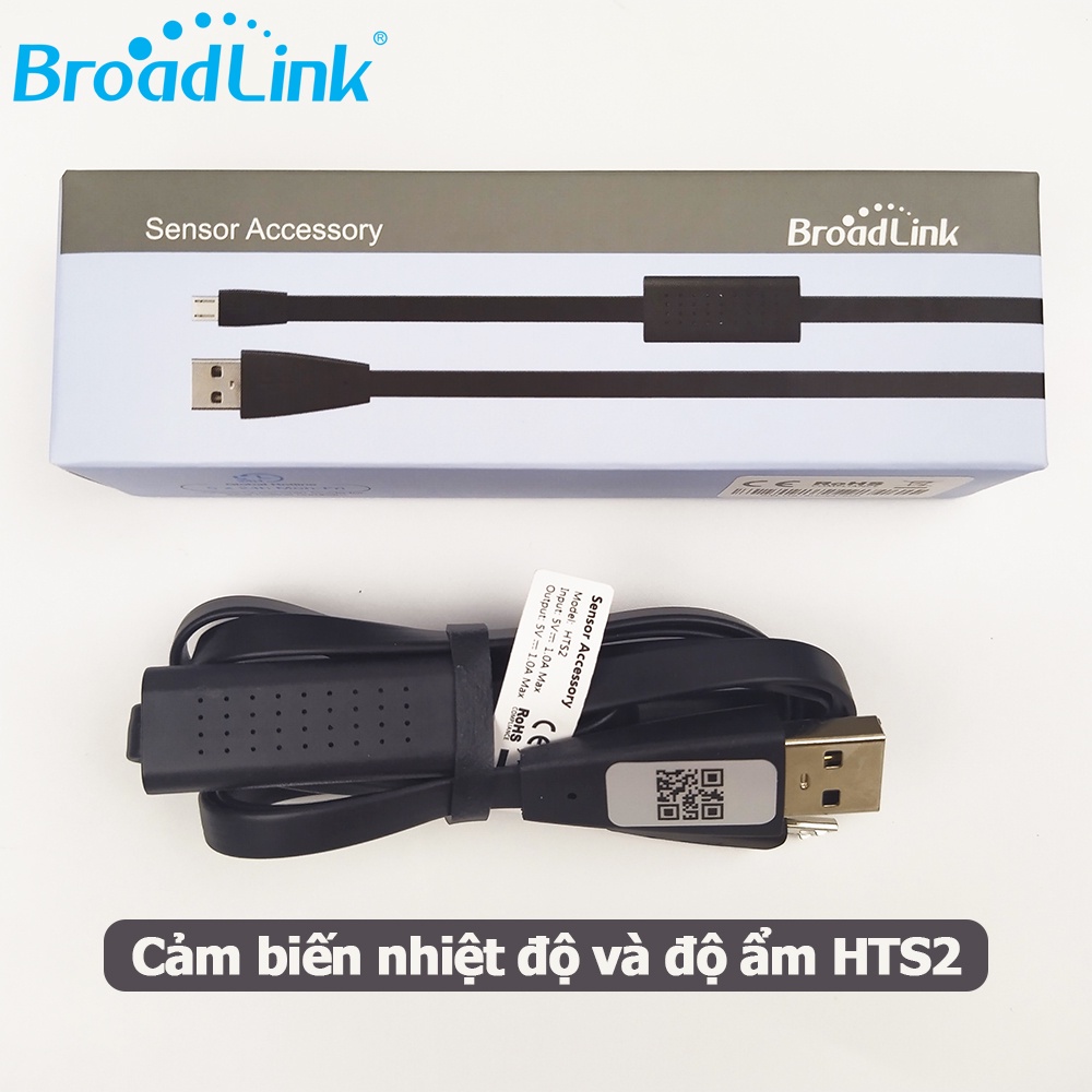 * BroadLink RM4 Mini có thể sử dụng kèm cáp cảm biến nhiệt độ và độ ẩm HTS2 để theo dõi nhiệt độ độ ẩm trong phòng và tạo ngữ cảnh điều khiển thiết bị điện thông minh dựa vào nhiệt độ vào độ ẩm.