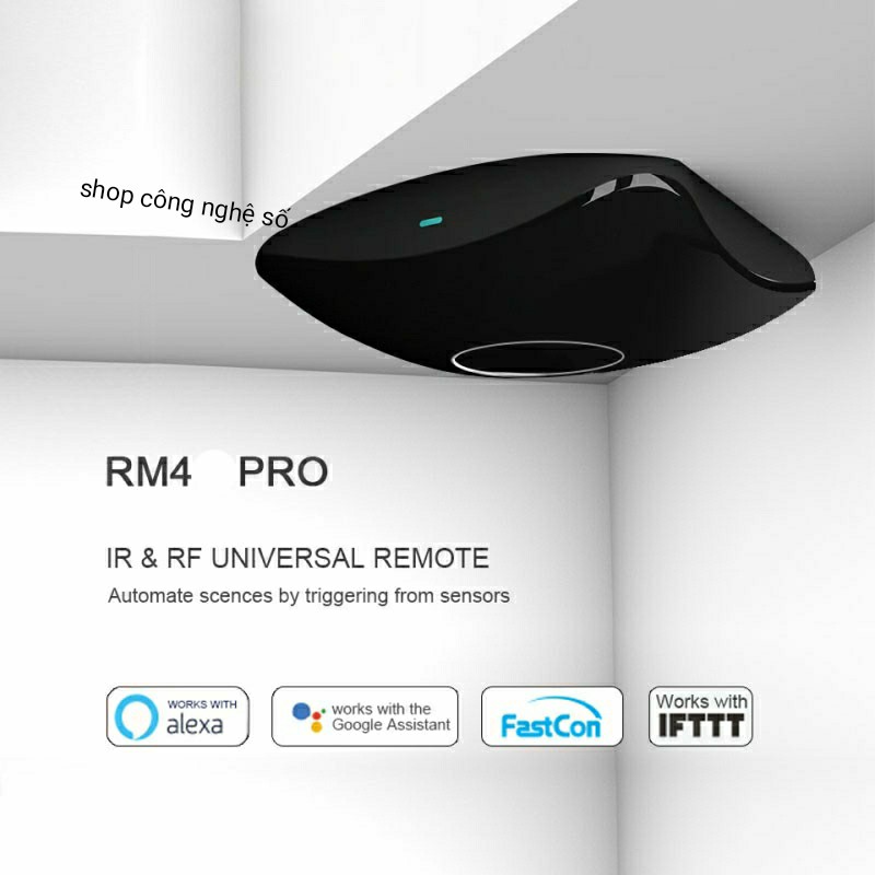 * Broadlink RM4 Pro cho phép người dùng có thể điều khiển hầu hết các thiết bị trong gia đình (Điều hòa, Tivi, quạt điện, đèn, rèm cửa…) từ xa bằng điện thoại di động, bằng Remote (IR, RF) hoặc kết hợp với Alexa và Google Home để điều khiển bằng giọng nói.