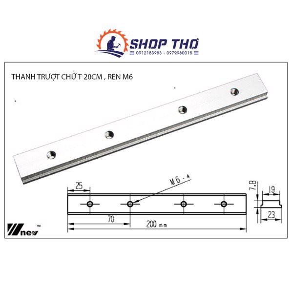 Thanh trượt chữ T dài 20cm nhôm CNC dành cho chế cưa bàn, bàn phay gỗ, cữ trượt* Mặt cắt thiết kế chữ T dài 20cm, lắp vừa với ray trượt SHOPTHO đang cung cấp, mặt cắt ray nhôm bên dưới.