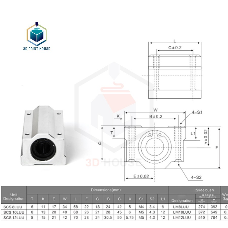 - Ổ Bi Trượt SCS8LUU SCS10LUU SCS12LUU loại dài là giải pháp nâng cấp cho việc sử dụng bi trượt cùng với giá nhựa trong các máy in 3D, CNC mini... cần độ chính xác, đồ bền và thẩm mỹ cao.