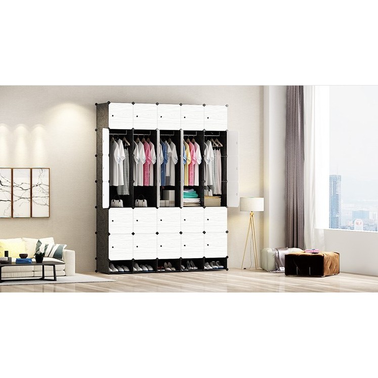Nhựa PP dẻo dai từ thiên nhiên, khung thép chắc chắn. Mỗi tấm nhựa liên kết với nhau bằng chốt nhựa 8 chiều. Mỗi ô chịu lực 12-15kg quần áo. Có thể gấp đồ, treo đồ theo ý thích