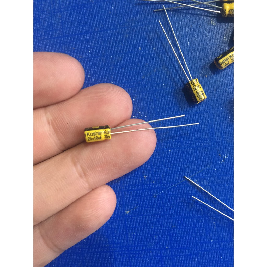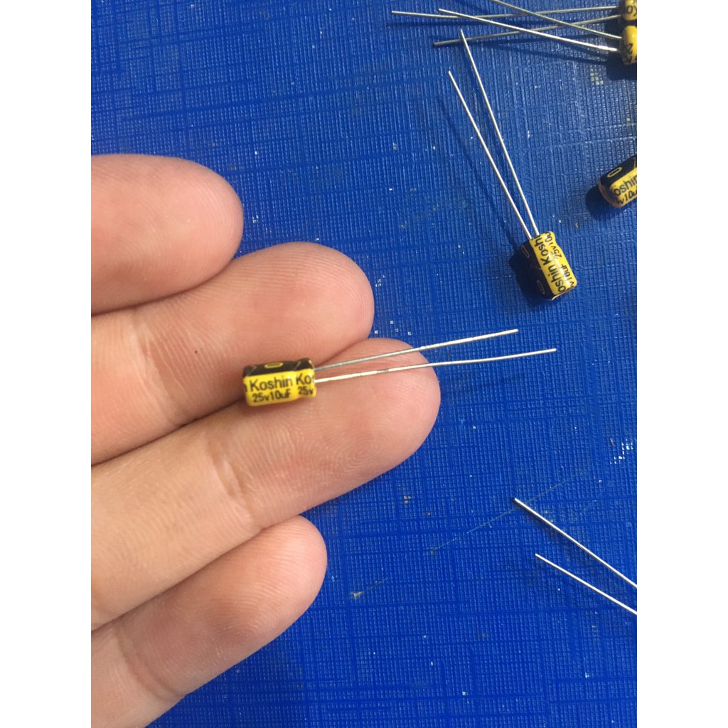 Tụ 25V 10uf Koshin hàng chính hãngChuyên cung cấp linh kiện tháo máy, sò các loại, phụ kiện laptop, bàn phím, chuột, điều khiển tivi, điều khiển quạt, điều khiển điều hòa,máy lạnh,...