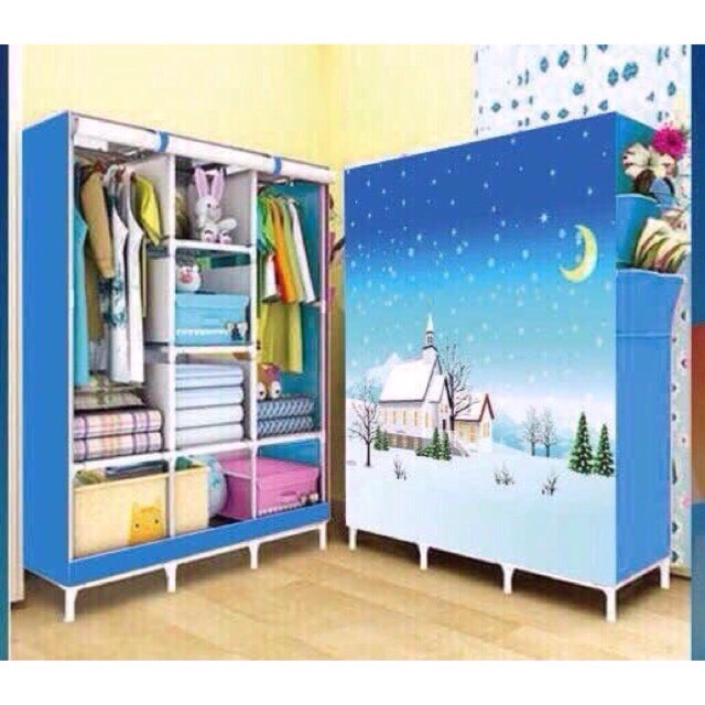 - Tủ được thiết kế với kiểu dáng hiện đại , khung thép chắc chắn và bọc vải chống thấm nươc , dai chống rách , in hoạ tiết 3d cực kì bắt mắt- tủ gồm 3 buồng to và 8 ngăn , 2 ngăn to rộng để treo móc ,6 ngăn nhỏ để quần áo gấp hoặc cất chăn màn đều ok hết nhe