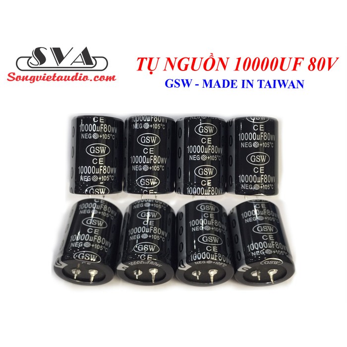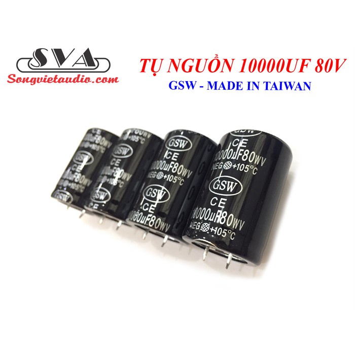 Tụ 80V 10000 mi GSW.Dùng lắp ráp bo nguồn 4 tụ, 8 tụ cho ampli gia đinh.