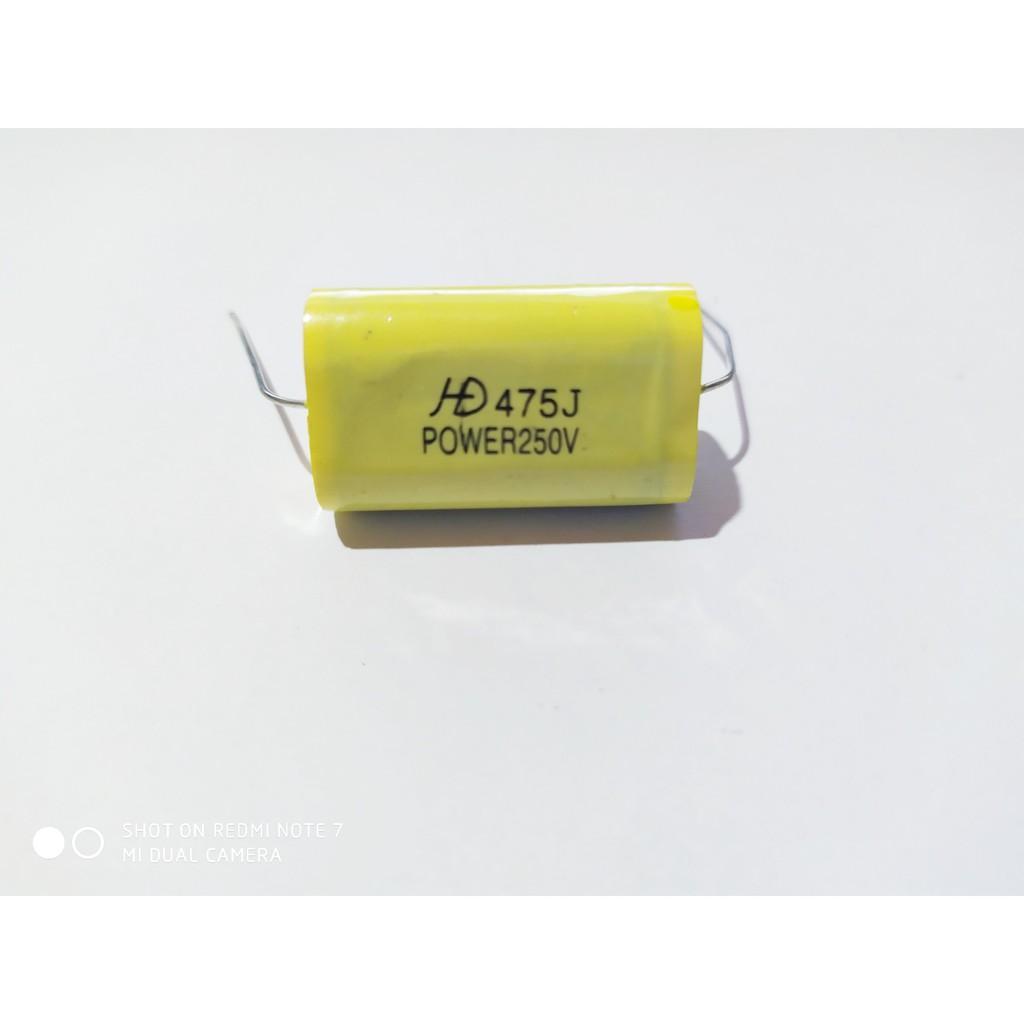 Tụ cản loa trung 475J hay còn gọi tắt là 4.7 hay 4mi7 dùng để lắp kèm vào các loa trung ráp thùng để bảo vệ loa trung và cho ra âm trung hơn ( trung ko qua tụ hay mạch phân tần mà câu trực tiếp vào amply thì dễ bứt loa hơn), thường loa trung đc cản tụ 3.3 hoặc 4.7 tụ 3.3 ra âm trung và có thêm 1 ít trep, 4.7 thì ra trung nhìều hơn.Giá VBNT