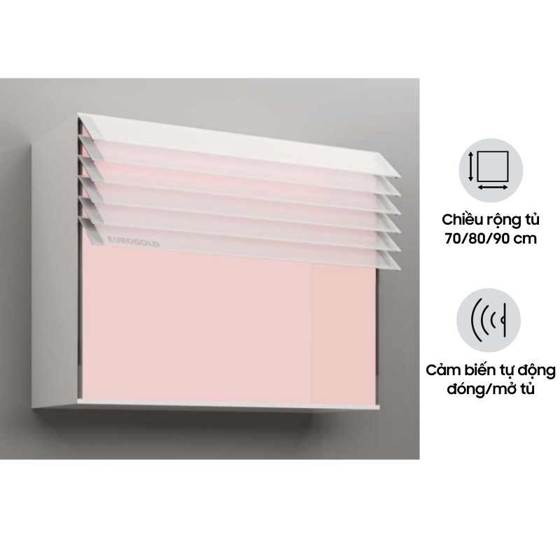 Tủ cánh kính tự động thông minh EUROGOLD được bảo hành 2 năm chính hãng.
