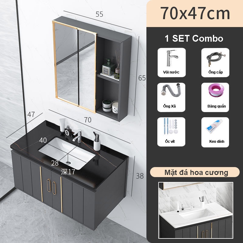 **** Tủ chậu rửa mặt tủ lavabo, tủ kính và mặt đá hoa cương bao gồm :+Lavabo size 40X28X17 cm