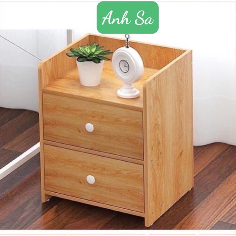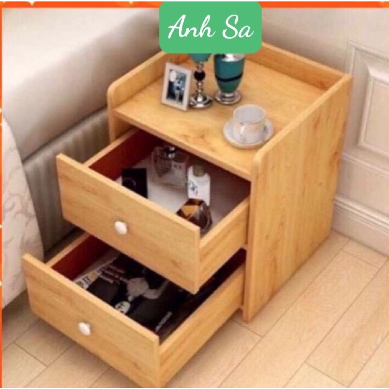 Tủ Đầu Giường 2 Ngăn Kéo Bằng Gỗ, Kệ Để Đồ Tiện Lợi