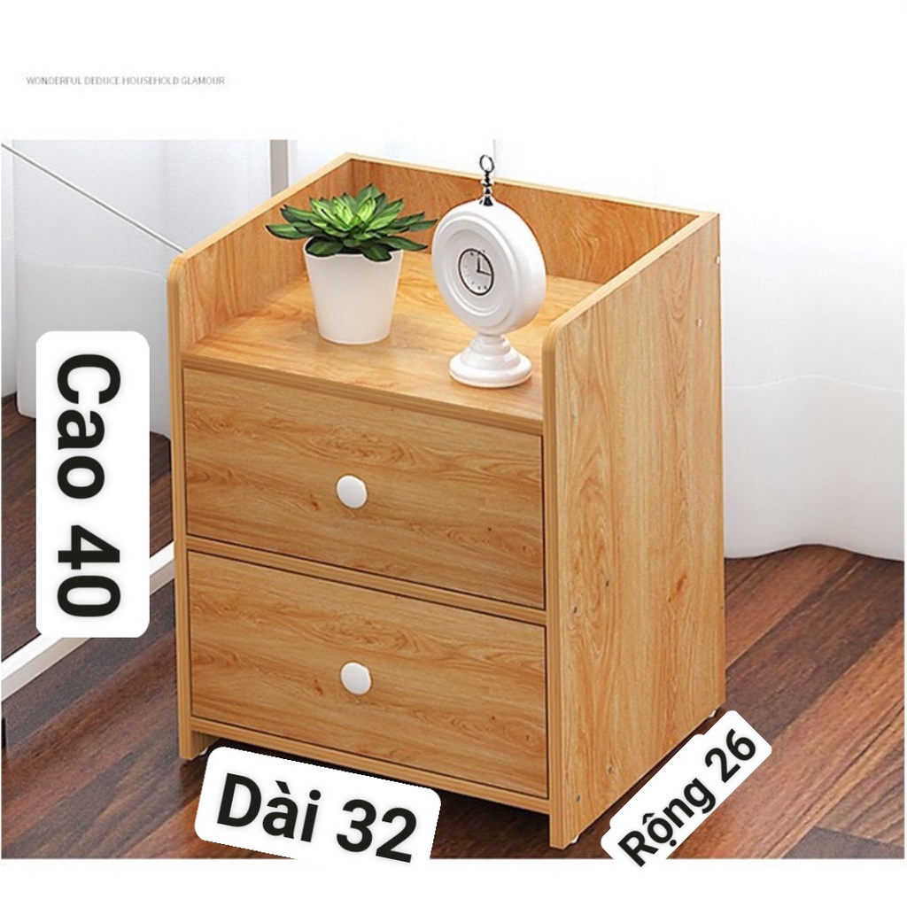 Tủ Đầu Giường 2 Ngăn Kéo Bằng Gỗ, Kệ Để Đồ Tiện Lợi