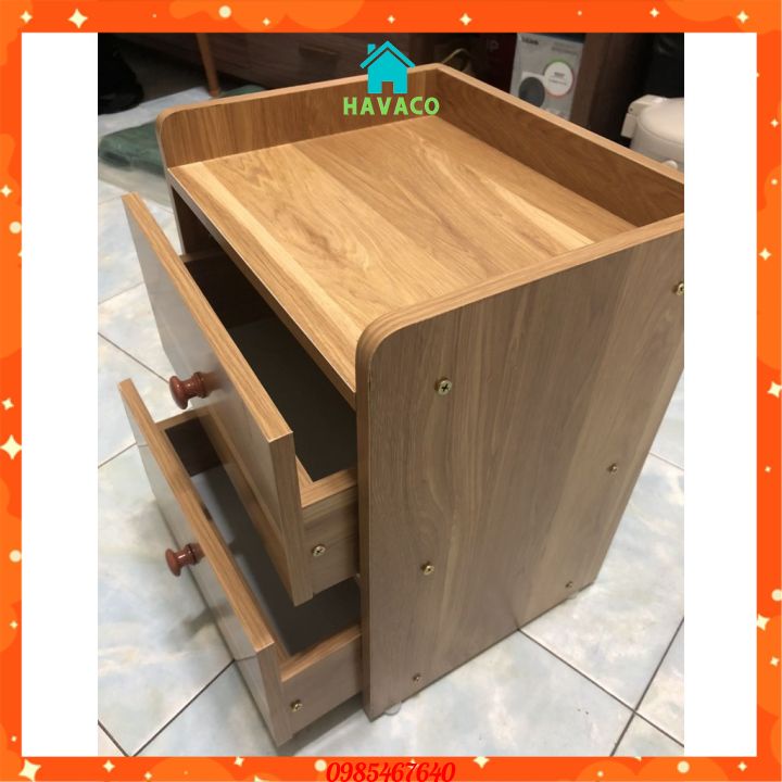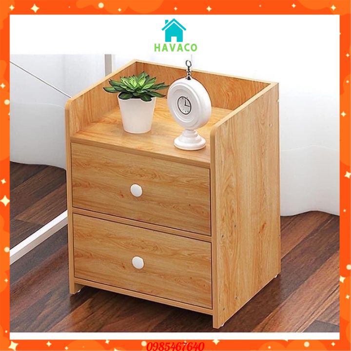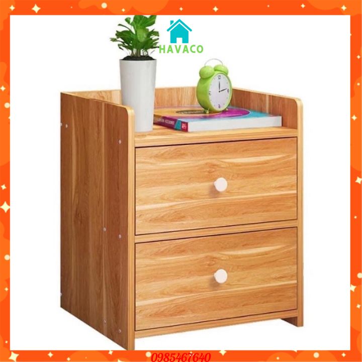 Tủ Đầu Giường 2 Ngăn Kéo Bằng Gỗ, Kệ Để Đồ Tiện Lợi