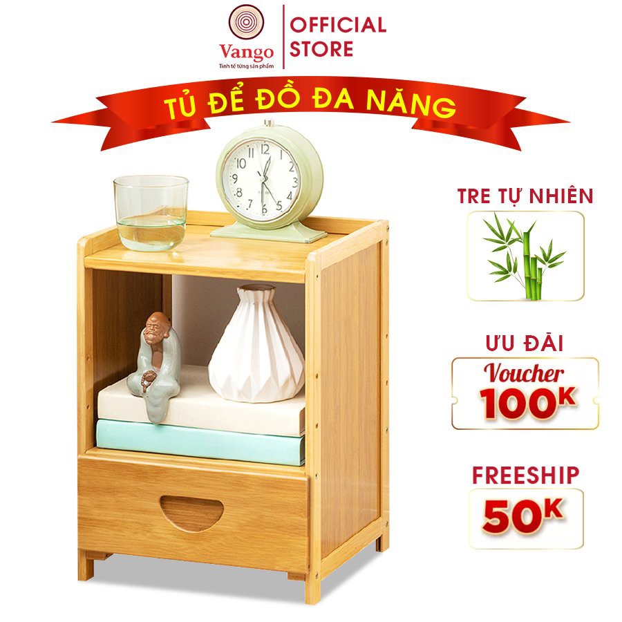 Nhà cửa & Đời sống > Nội thất > Tủ bếp || Tủ đầu giường để đồ phòng ngủ đa năng, thông minh VANGO V26 gỗ tre tự nhiên cao cấp, Phong cách Âu Á sang trọngCòn hàng
