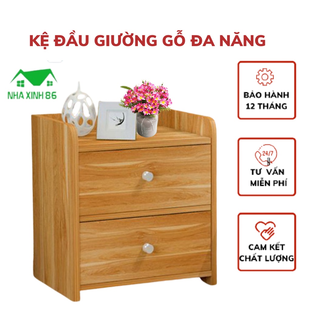 - Tủ đầu giường gỗ 2 ngăn dùng để các vật dụng trang trí, sách báo, tạo chí, các vật dụng nhỏ khác.