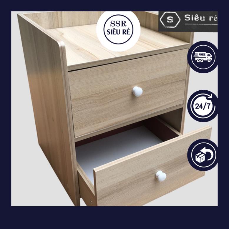 Tên sản phẩm: Tủ Đầu Giường, Kệ Đầu Giường 2 Ngăn Kéo Màu Gỗ Tiện Lợi