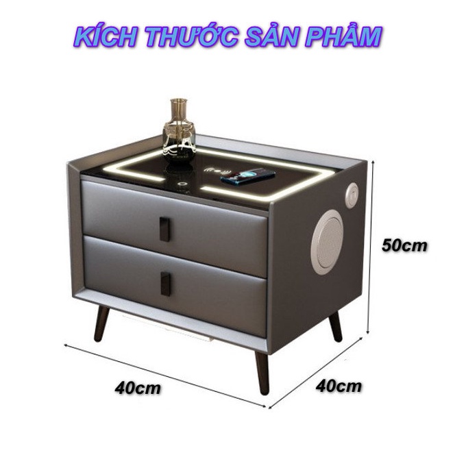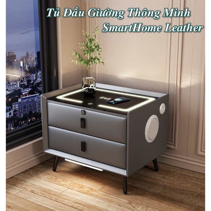 Tủ Đầu Giường Thông Minh Tích Hợp Khóa Tủ Vân Tay Có Sạc Không Dây, Đèn Ngủ Cảm Ứng SmartHome Leather ☘️ FREESHIP ☘️
