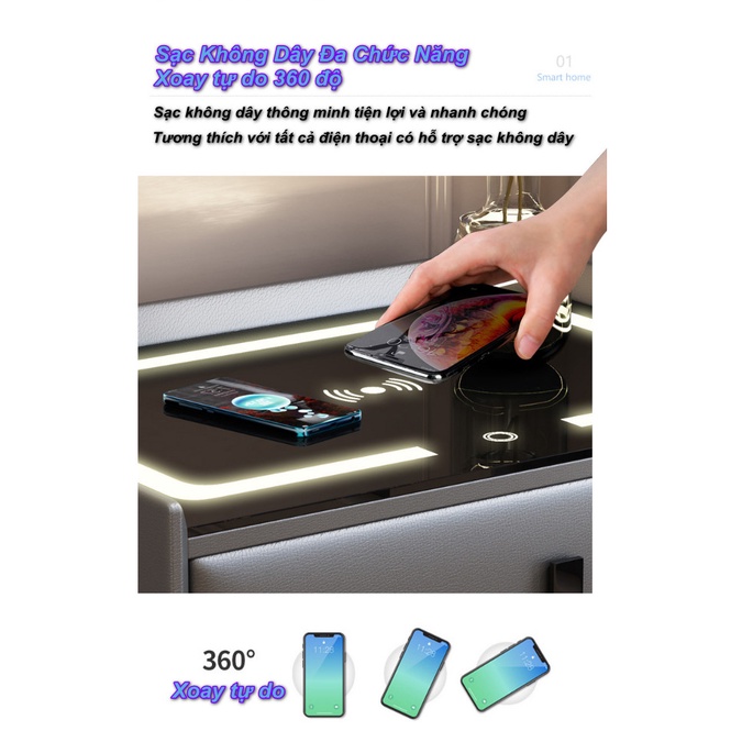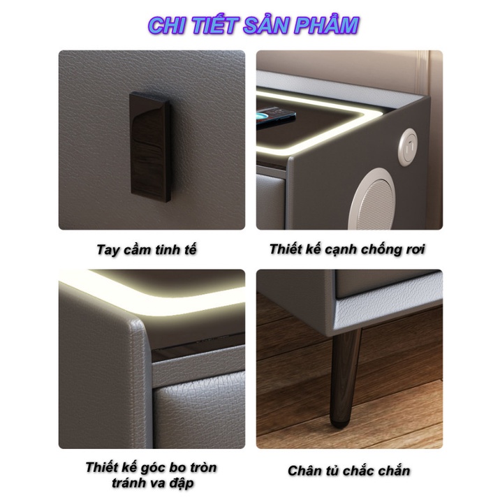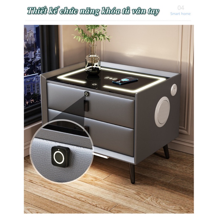 Giới thiệu Tủ Đầu Giường Thông Minh Tích Hợp Khóa Tủ Vân Tay Có Sạc Không Dây, Đèn Ngủ Cảm Ứng SmartHome Leather ☘️ FREESHIP ☘️