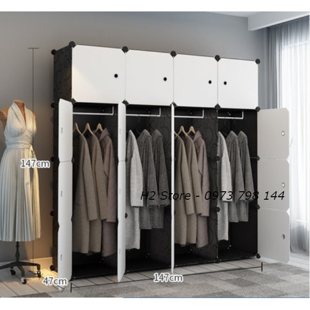 Giới thiệu TỦ ĐỂ ĐỒ GIÁ RẺ LẮP GHÉP THÔNG MINH 16 Ô ĐEN CỬA TRẮNG ĐỤC ĐA NĂNG sâu 47cm