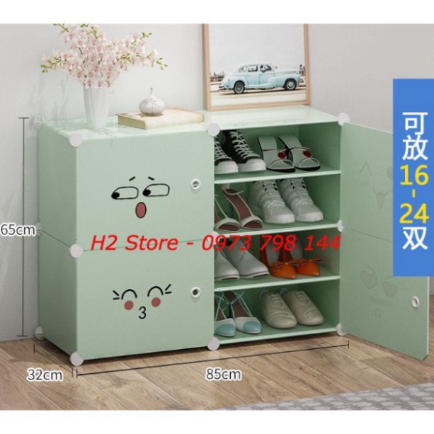 TỦ ĐỂ GIÀY 8 Ô (chia ô) MÀU CỐM CỬA MẶT CƯỜI SIÊU ĐẸP LẮP GHÉP ĐA NĂNG