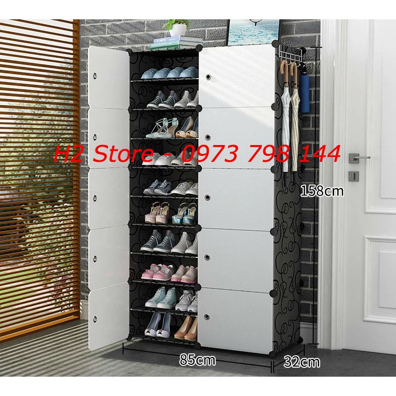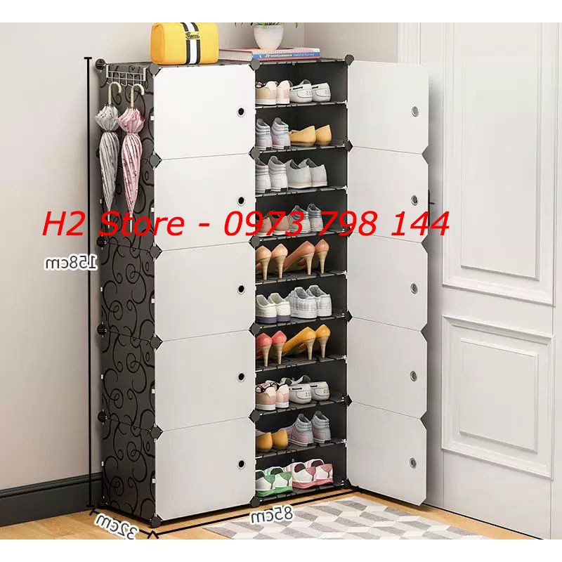 Giới thiệu TỦ ĐỂ GIÀY CỬA TRẮNG ĐỤC VÁCH ĐEN 20 Ô (chia ô).