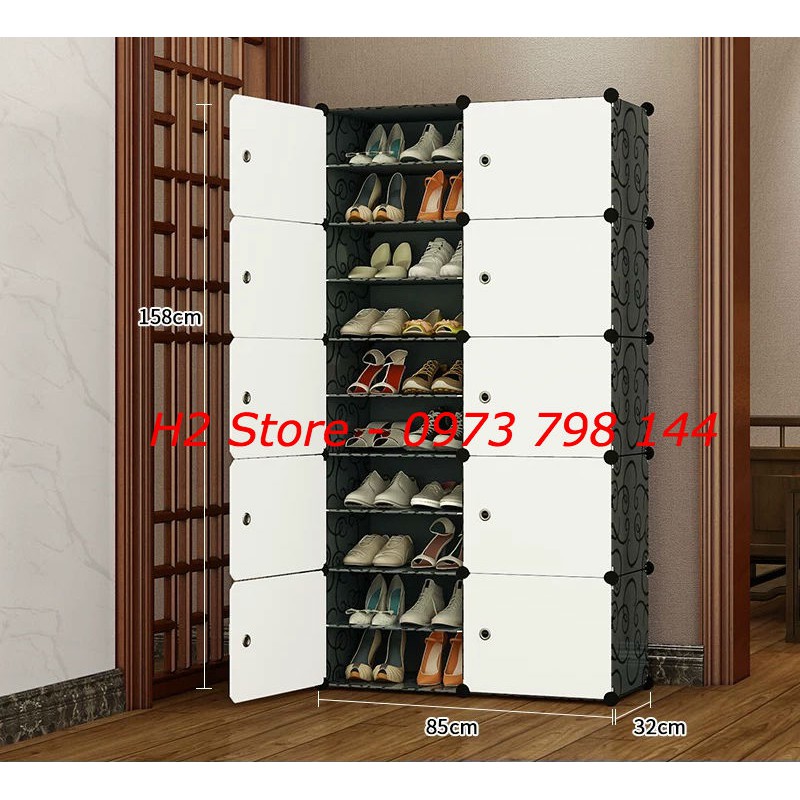 TỦ ĐỂ GIÀY CỬA TRẮNG ĐỤC VÁCH ĐEN 20 Ô (chia ô).