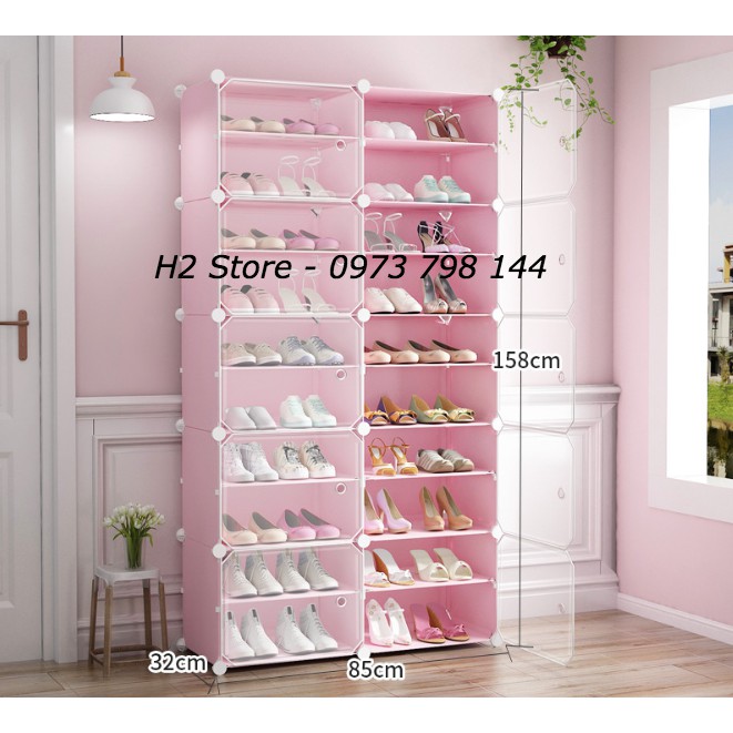 TỦ ĐỂ GIÀY CỬA TRẮNG TRONG VÁCH HỒNG NHẠT 20 Ô (chia ô)