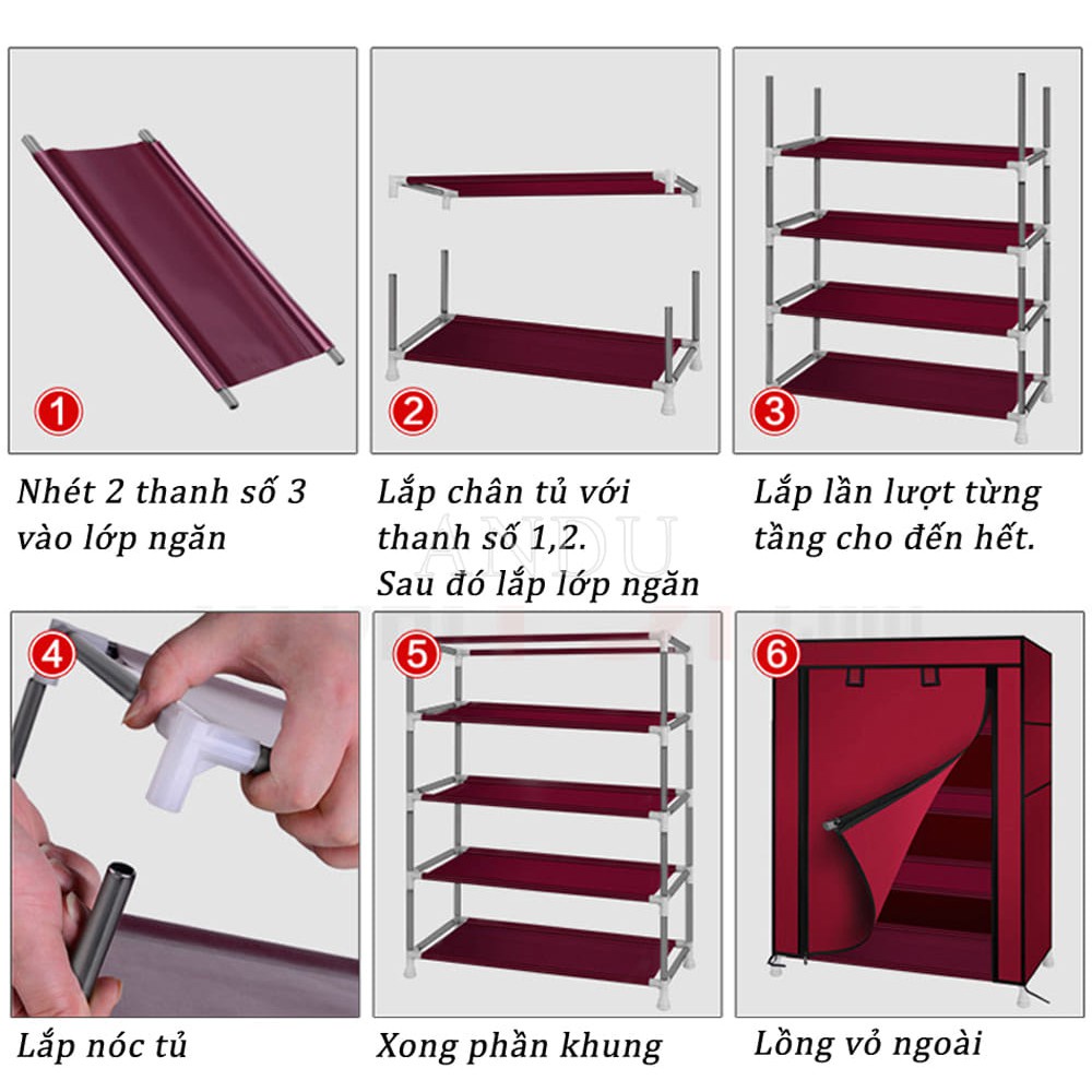 Giới thiệu Tủ Để Giày Dép 6 Tầng Cao Cấp, Tủ Vải Khung Thép Đựng Giày + Tặng Kèm Hộp Đựng Giày