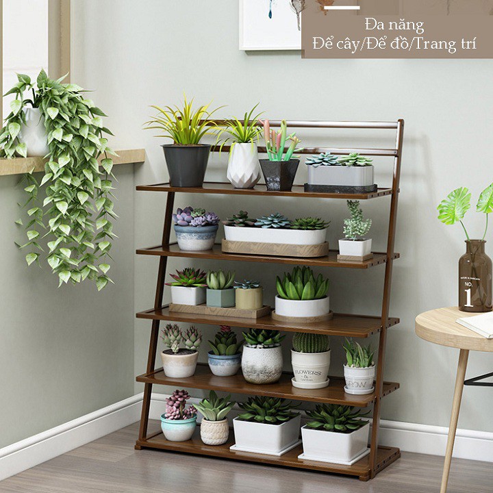 Tủ để giày dép gỗ tre 5 tầng siêu tiện dụng, Giá để giày để chậu hoa