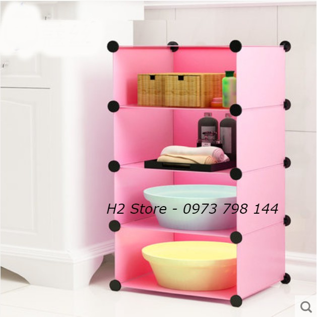 Nhà cửa & Đời sống > Nội thất > Tủ bếp || TỦ ĐỂ TRONG NHÀ TẮM LẮP GHÉP ĐA NĂNG 4 Ô NHỎ MẪU VÁCH HỒNG CUTE THÔNG MINH sâu 37cmCòn hàng