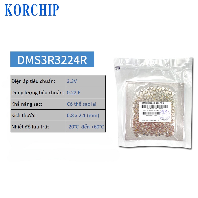 Thiết Bị Điện Gia Dụng > Pin || Tụ điện DMS3R3224R Korea KORCHIP 3.3V 0.22F SMDCòn hàng