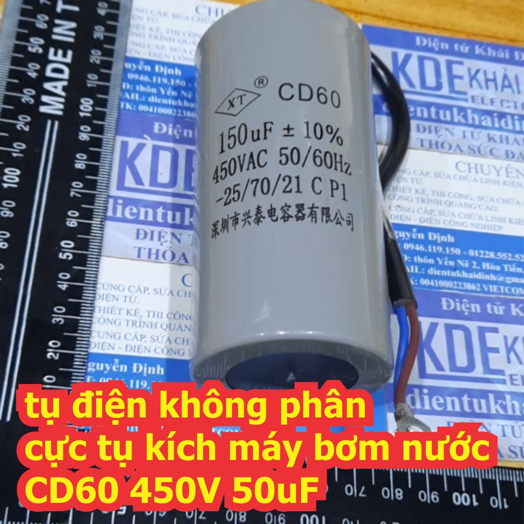 Giới thiệu tụ điện không phân cực tụ kích máy bơm nước CD60 450V các loại 100uF ~ 500uF kde7255
