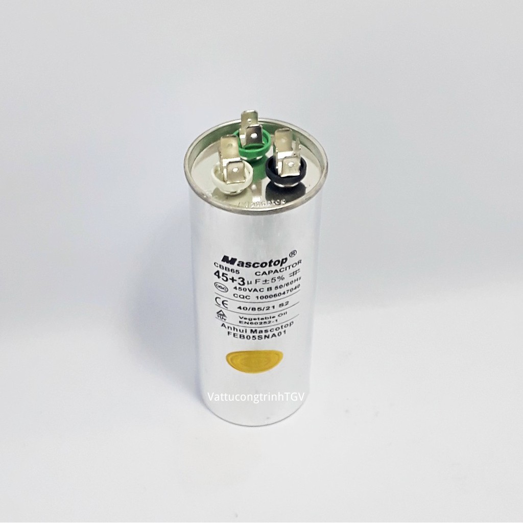 Thông số : 45+1.5mF + 5% ; 450VAC B 50/60 Hz
