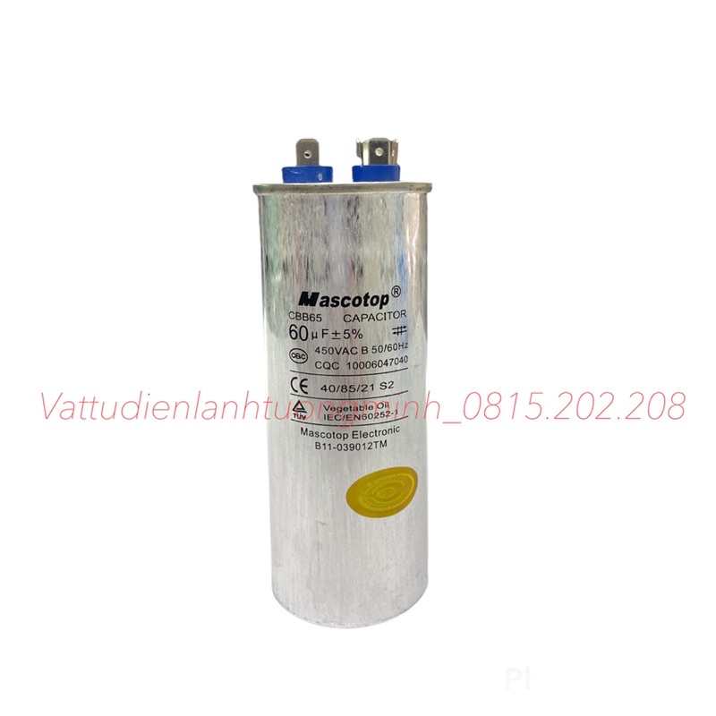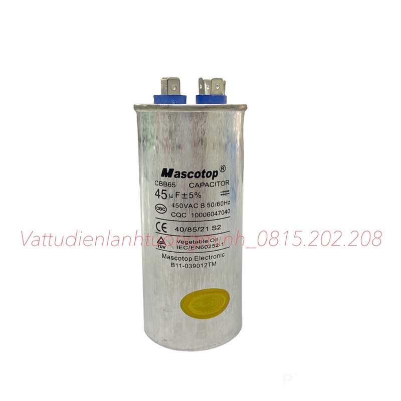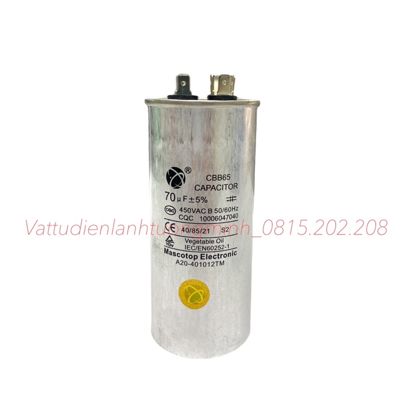 Giới thiệu Tụ điều hoà máy lạnh Capa điều hoà 25uF / 30uF / 35uF / 40uF / 45uF / 50uF / 60uF / 70uF 450VAC MASCOTOP chính hãng