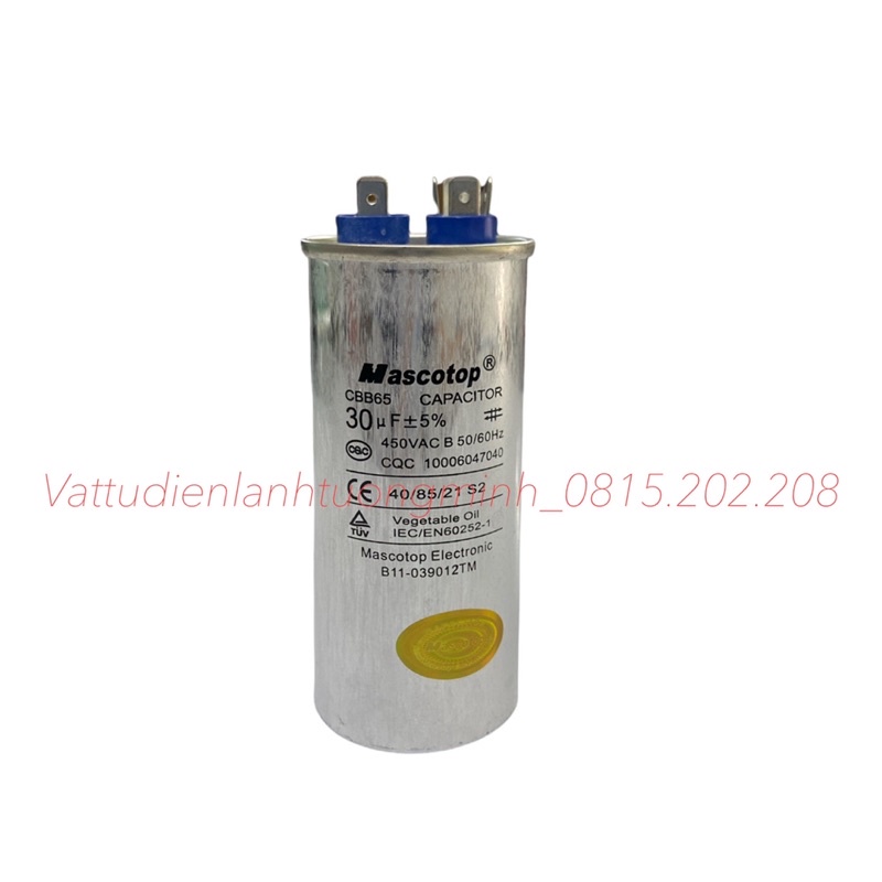 Thiết Bị Điện Gia Dụng > Thiết bị điện gia dụng lớn > Thiết bị làm mát > Điều hòa || Tụ điều hoà máy lạnh Capa điều hoà 25uF / 30uF / 35uF / 40uF / 45uF / 50uF / 60uF / 70uF 450VAC MASCOTOP chính hãngCòn hàng