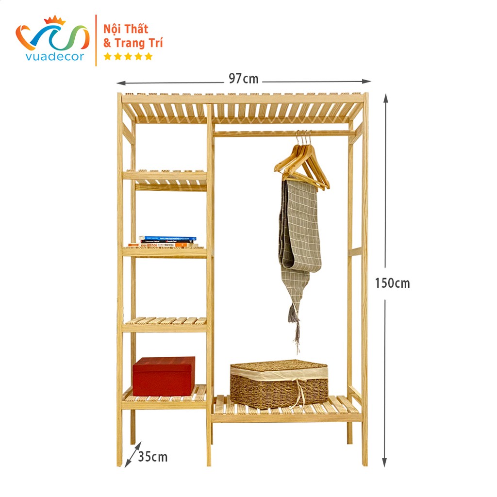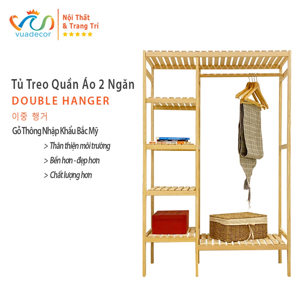 Tủ Giá Treo Quần Áo Đôi Hàn Quốc Đẹp Giá Rẻ Đơn Giản Đa Năng Hiện Đại Bằng Gỗ Lắp Ráp 2 Khoang Gỗ Thông Tự NhiênTHÔNG SỐ: