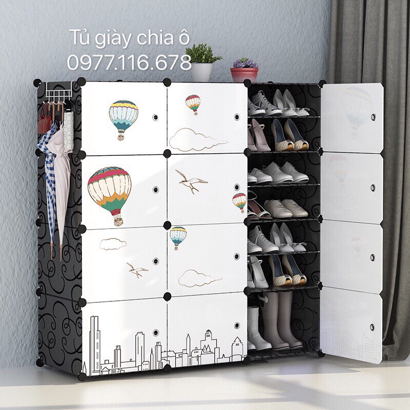 TỦ ĐỰNG GIÀY DÉP 24 Ô LẮP GHÉP CHIA Ô( tặng kèm móc sườn treo đồ)