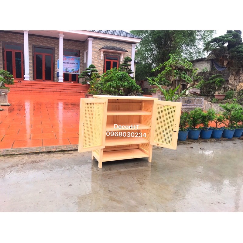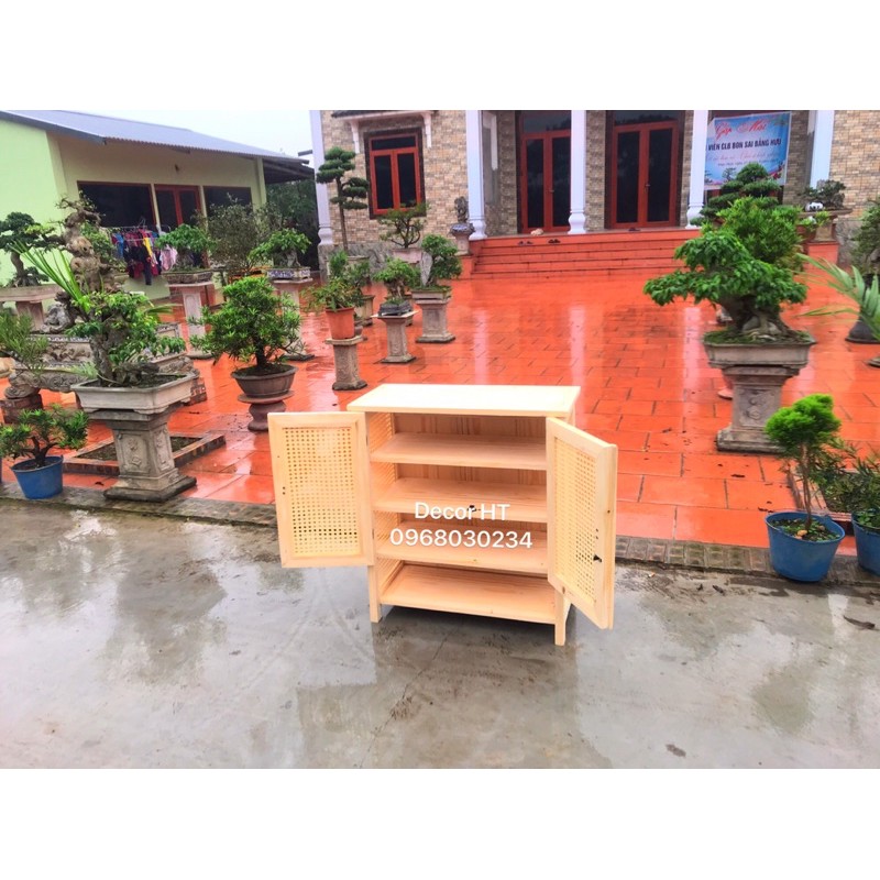 Tên Sản Phẩm : Tủ Đựng Giầy Gỗ Thông Nhập Khẩu Kết Hợp Mây Mắt CáoKích THước :80x30 x75 cm